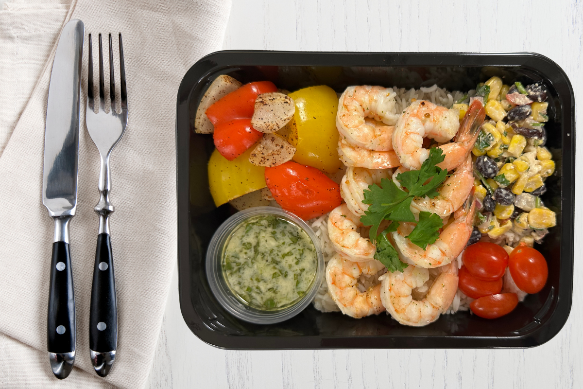 Succulent shrimp served over fragrant basmati rice with roasted peppers and onions, smoky corn and black beans, and fresh cabbage and grape tomatoes. Finished with a bright lime cilantro sauce and fresh herbs for a vibrant, southwest-inspired bowl that delivers big flavour and balance.