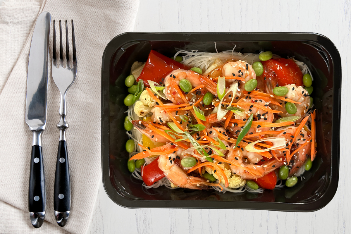 A lighter, low-carb take on our Sweet Chili Shrimp Bowl, featuring tender shrimp over cauliflower rice with aromatic roasted vegetables, edamame, and julienned carrots. Finished with a sweet chili sauce, sesame seeds, and fresh herbs for bold flavour with balanced heat—without the extra carbs.